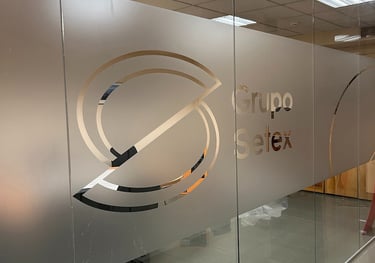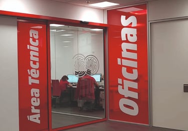 Privacidad con estilo: Vinilos ácido para cristales. Equilibra la entrada de luz y la discreción de tus espacios, gráficos corporativos, con una instalación impecable.