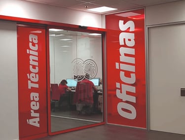 Vinilos transparentes de color. Equilibra la entrada de luz y la discreción de tus espacios, gráficos corporativos, con una instalación impecable.
